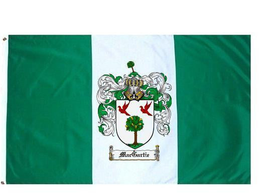Macgartie Family Crest Flag / Coat of Arms Flag. You will receive a high quality 3' x 5' Polyester flag with two brass grommets. Proudly display your family heritage with this flag, or hang as a banner on a wall. Our flags make great gifts for birthdays, weddings, anniversaries, fathers day, mothers day, groomsmen gifts, and any other occasion