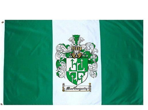 Macgogarty Family Crest Flag / Coat of Arms Flag. You will receive a high quality 3' x 5' Polyester flag with two brass grommets. Proudly display your family heritage with this flag, or hang as a banner on a wall. Our flags make great gifts for birthdays, weddings, anniversaries, fathers day, mothers day, groomsmen gifts, and any other occasion