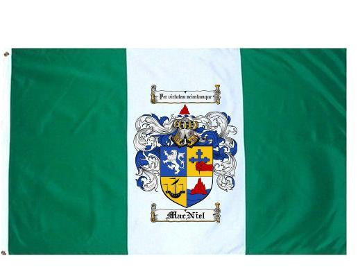 Macniel Family Crest Flag / Coat of Arms Flag. You will receive a high quality 3' x 5' Polyester flag with two brass grommets. Proudly display your family heritage with this flag, or hang as a banner on a wall. Our flags make great gifts for birthdays, weddings, anniversaries, fathers day, mothers day, groomsmen gifts, and any other occasion