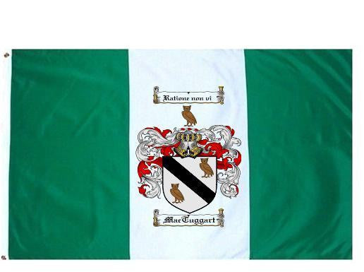 Mactuggart Family Crest Flag / Coat of Arms Flag. You will receive a high quality 3' x 5' Polyester flag with two brass grommets. Proudly display your family heritage with this flag, or hang as a banner on a wall. Our flags make great gifts for birthdays, weddings, anniversaries, fathers day, mothers day, groomsmen gifts, and any other occasion