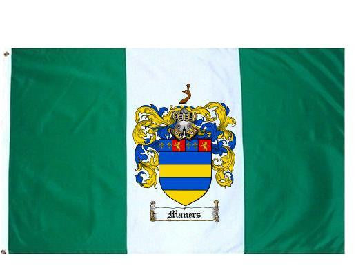 Maners Family Crest Flag / Coat of Arms Flag. You will receive a high quality 3' x 5' Polyester flag with two brass grommets. Proudly display your family heritage with this flag, or hang as a banner on a wall. Our flags make great gifts for birthdays, weddings, anniversaries, fathers day, mothers day, groomsmen gifts, and any other occasion