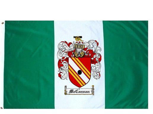 Mccannan Family Crest Flag / Coat of Arms Flag. You will receive a high quality 3' x 5' Polyester flag with two brass grommets. Proudly display your family heritage with this flag, or hang as a banner on a wall. Our flags make great gifts for birthdays, weddings, anniversaries, fathers day, mothers day, groomsmen gifts, and any other occasion
