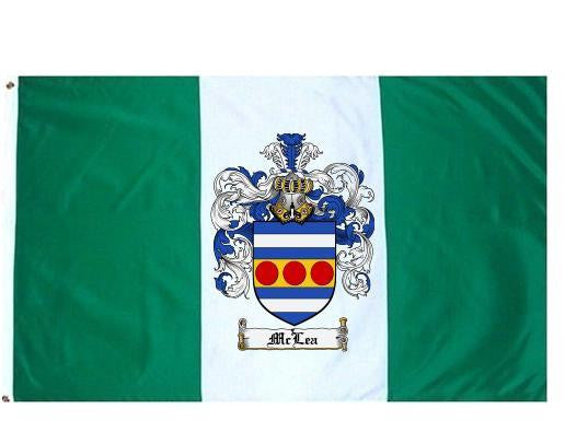 Mclea Family Crest Flag / Coat of Arms Flag. You will receive a high quality 3' x 5' Polyester flag with two brass grommets. Proudly display your family heritage with this flag, or hang as a banner on a wall. Our flags make great gifts for birthdays, weddings, anniversaries, fathers day, mothers day, groomsmen gifts, and any other occasion