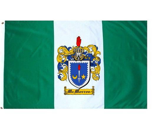 Mcmorron Family Crest Flag / Coat of Arms Flag. You will receive a high quality 3' x 5' Polyester flag with two brass grommets. Proudly display your family heritage with this flag, or hang as a banner on a wall. Our flags make great gifts for birthdays, weddings, anniversaries, fathers day, mothers day, groomsmen gifts, and any other occasion