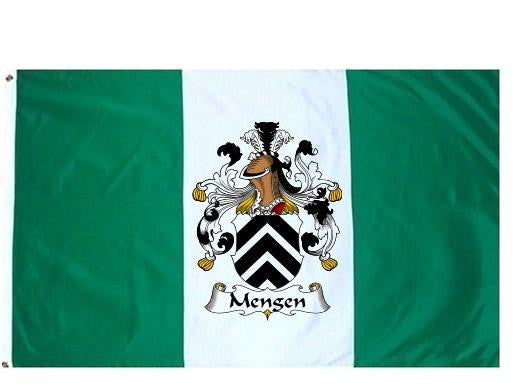 Mengen Family Crest Flag / Coat of Arms Flag. You will receive a high quality 3' x 5' Polyester flag with two brass grommets. Proudly display your family heritage with this flag, or hang as a banner on a wall. Our flags make great gifts for birthdays, weddings, anniversaries, fathers day, mothers day, groomsmen gifts, and any other occasion