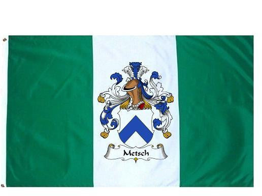 Metsch Family Crest Flag / Coat of Arms Flag. You will receive a high quality 3' x 5' Polyester flag with two brass grommets. Proudly display your family heritage with this flag, or hang as a banner on a wall. Our flags make great gifts for birthdays, weddings, anniversaries, fathers day, mothers day, groomsmen gifts, and any other occasion