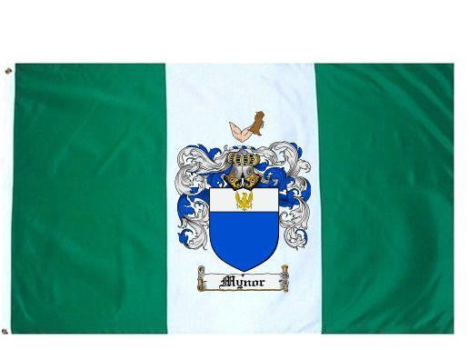 Mynor Family Crest Flag / Coat of Arms Flag. You will receive a high quality 3' x 5' Polyester flag with two brass grommets. Proudly display your family heritage with this flag, or hang as a banner on a wall. Our flags make great gifts for birthdays, weddings, anniversaries, fathers day, mothers day, groomsmen gifts, and any other occasion
