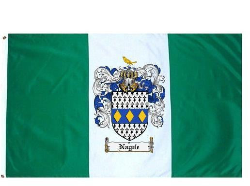 Nagele Family Crest Flag / Coat of Arms Flag. You will receive a high quality 3' x 5' Polyester flag with two brass grommets. Proudly display your family heritage with this flag, or hang as a banner on a wall. Our flags make great gifts for birthdays, weddings, anniversaries, fathers day, mothers day, groomsmen gifts, and any other occasion