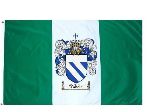 Nubold Family Crest Flag / Coat of Arms Flag. You will receive a high quality 3' x 5' Polyester flag with two brass grommets. Proudly display your family heritage with this flag, or hang as a banner on a wall. Our flags make great gifts for birthdays, weddings, anniversaries, fathers day, mothers day, groomsmen gifts, and any other occasion