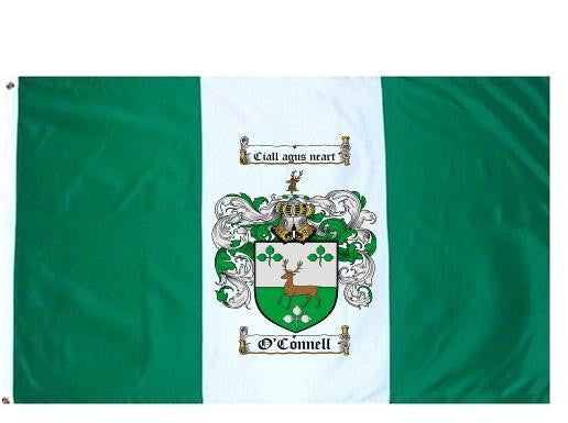 Oconnell Family Crest Flag / Coat of Arms Flag. You will receive a high quality 3' x 5' Polyester flag with two brass grommets. Proudly display your family heritage with this flag, or hang as a banner on a wall. Our flags make great gifts for birthdays, weddings, anniversaries, fathers day, mothers day, groomsmen gifts, and any other occasion