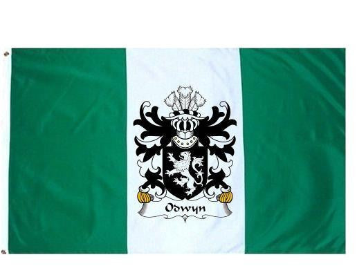 Odwyn Family Crest Flag / Coat of Arms Flag. You will receive a high quality 3' x 5' Polyester flag with two brass grommets. Proudly display your family heritage with this flag, or hang as a banner on a wall. Our flags make great gifts for birthdays, weddings, anniversaries, fathers day, mothers day, groomsmen gifts, and any other occasion