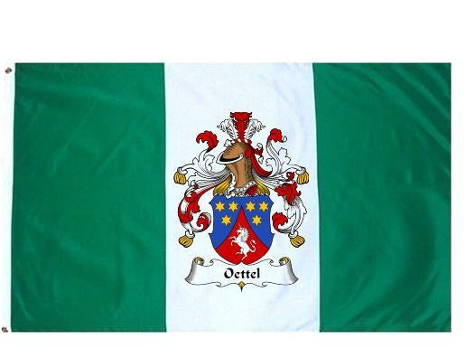 Oettel Family Crest Flag / Coat of Arms Flag. You will receive a high quality 3' x 5' Polyester flag with two brass grommets. Proudly display your family heritage with this flag, or hang as a banner on a wall. Our flags make great gifts for birthdays, weddings, anniversaries, fathers day, mothers day, groomsmen gifts, and any other occasion