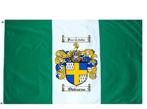 Osburne Family Crest Flag / Coat of Arms Flag. You will receive a high quality 3' x 5' Polyester flag with two brass grommets. Proudly display your family heritage with this flag, or hang as a banner on a wall. Our flags make great gifts for birthdays, weddings, anniversaries, fathers day, mothers day, groomsmen gifts, and any other occasion