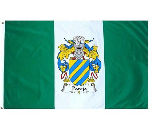 Pareja Family Crest Flag / Coat of Arms Flag. You will receive a high quality 3' x 5' Polyester flag with two brass grommets. Proudly display your family heritage with this flag, or hang as a banner on a wall. Our flags make great gifts for birthdays, weddings, anniversaries, fathers day, mothers day, groomsmen gifts, and any other occasion