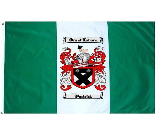 Partrick Family Crest Flag / Coat of Arms Flag. You will receive a high quality 3' x 5' Polyester flag with two brass grommets. Proudly display your family heritage with this flag, or hang as a banner on a wall. Our flags make great gifts for birthdays, weddings, anniversaries, fathers day, mothers day, groomsmen gifts, and any other occasion