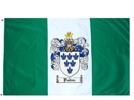 Paston Family Crest Flag / Coat of Arms Flag. You will receive a high quality 3' x 5' Polyester flag with two brass grommets. Proudly display your family heritage with this flag, or hang as a banner on a wall. Our flags make great gifts for birthdays, weddings, anniversaries, fathers day, mothers day, groomsmen gifts, and any other occasion