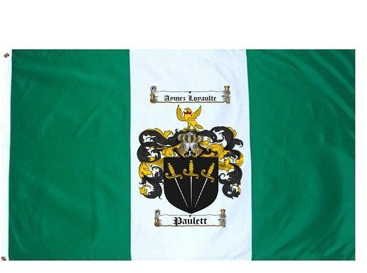 Paulett Family Crest Flag / Coat of Arms Flag. You will receive a high quality 3' x 5' Polyester flag with two brass grommets. Proudly display your family heritage with this flag, or hang as a banner on a wall. Our flags make great gifts for birthdays, weddings, anniversaries, fathers day, mothers day, groomsmen gifts, and any other occasion