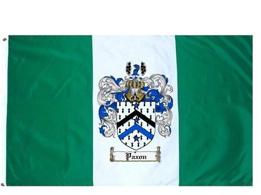 Paxon Family Crest Flag / Coat of Arms Flag. You will receive a high quality 3' x 5' Polyester flag with two brass grommets. Proudly display your family heritage with this flag, or hang as a banner on a wall. Our flags make great gifts for birthdays, weddings, anniversaries, fathers day, mothers day, groomsmen gifts, and any other occasion