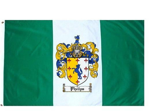 Phellps Family Crest Flag / Coat of Arms Flag. You will receive a high quality 3' x 5' Polyester flag with two brass grommets. Proudly display your family heritage with this flag, or hang as a banner on a wall. Our flags make great gifts for birthdays, weddings, anniversaries, fathers day, mothers day, groomsmen gifts, and any other occasion