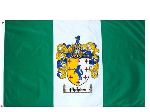 Phelphes Family Crest Flag / Coat of Arms Flag. You will receive a high quality 3' x 5' Polyester flag with two brass grommets. Proudly display your family heritage with this flag, or hang as a banner on a wall. Our flags make great gifts for birthdays, weddings, anniversaries, fathers day, mothers day, groomsmen gifts, and any other occasion