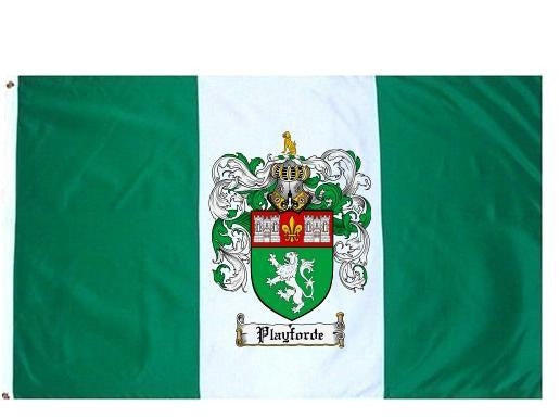 Playforde Family Crest Flag / Coat of Arms Flag. You will receive a high quality 3' x 5' Polyester flag with two brass grommets. Proudly display your family heritage with this flag, or hang as a banner on a wall. Our flags make great gifts for birthdays, weddings, anniversaries, fathers day, mothers day, groomsmen gifts, and any other occasion