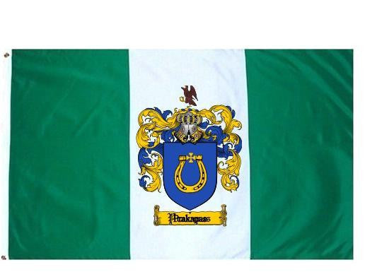 Prakapas Family Crest Flag / Coat of Arms Flag. You will receive a high quality 3' x 5' Polyester flag with two brass grommets. Proudly display your family heritage with this flag, or hang as a banner on a wall. Our flags make great gifts for birthdays, weddings, anniversaries, fathers day, mothers day, groomsmen gifts, and any other occasion