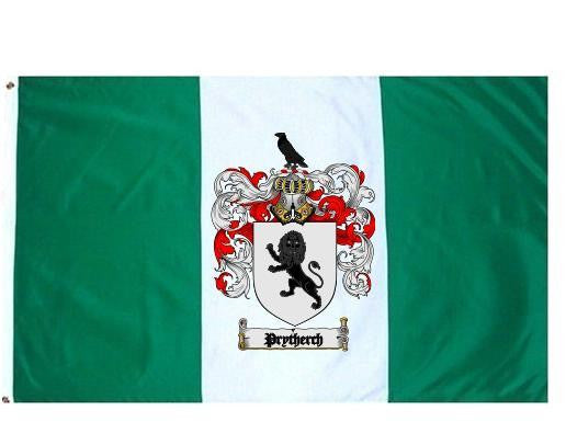 Prytherch Family Crest Flag / Coat of Arms Flag. You will receive a high quality 3' x 5' Polyester flag with two brass grommets. Proudly display your family heritage with this flag, or hang as a banner on a wall. Our flags make great gifts for birthdays, weddings, anniversaries, fathers day, mothers day, groomsmen gifts, and any other occasion