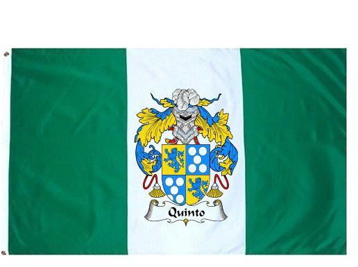 Quinto Family Crest Flag / Coat of Arms Flag. You will receive a high quality 3' x 5' Polyester flag with two brass grommets. Proudly display your family heritage with this flag, or hang as a banner on a wall. Our flags make great gifts for birthdays, weddings, anniversaries, fathers day, mothers day, groomsmen gifts, and any other occasion