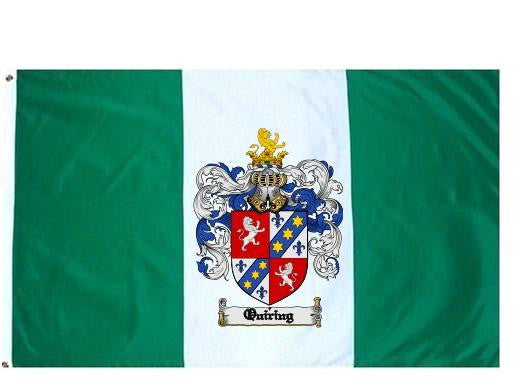 Quiring Family Crest Flag / Coat of Arms Flag. You will receive a high quality 3' x 5' Polyester flag with two brass grommets. Proudly display your family heritage with this flag, or hang as a banner on a wall. Our flags make great gifts for birthdays, weddings, anniversaries, fathers day, mothers day, groomsmen gifts, and any other occasion