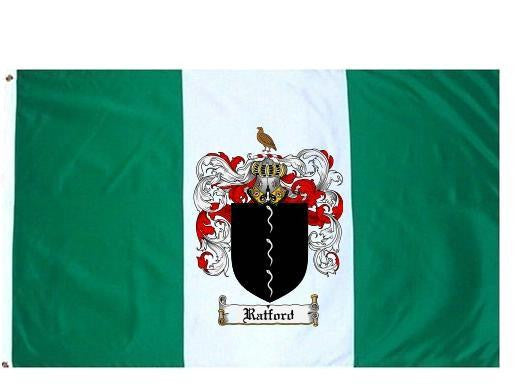 Ratford Family Crest Flag / Coat of Arms Flag. You will receive a high quality 3' x 5' Polyester flag with two brass grommets. Proudly display your family heritage with this flag, or hang as a banner on a wall. Our flags make great gifts for birthdays, weddings, anniversaries, fathers day, mothers day, groomsmen gifts, and any other occasion