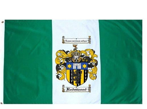 Redeswood Family Crest Flag / Coat of Arms Flag. You will receive a high quality 3' x 5' Polyester flag with two brass grommets. Proudly display your family heritage with this flag, or hang as a banner on a wall. Our flags make great gifts for birthdays, weddings, anniversaries, fathers day, mothers day, groomsmen gifts, and any other occasion