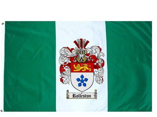 Rolleston Family Crest Flag / Coat of Arms Flag. You will receive a high quality 3' x 5' Polyester flag with two brass grommets. Proudly display your family heritage with this flag, or hang as a banner on a wall. Our flags make great gifts for birthdays, weddings, anniversaries, fathers day, mothers day, groomsmen gifts, and any other occasion