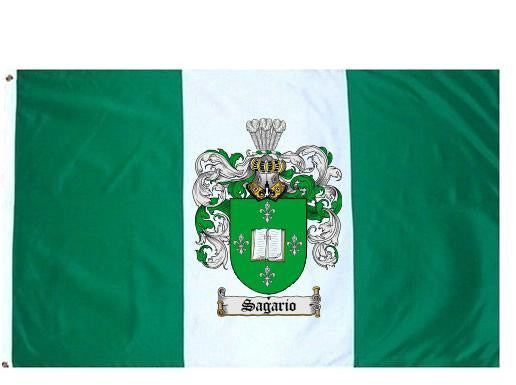 Sagario Family Crest Flag / Coat of Arms Flag. You will receive a high quality 3' x 5' Polyester flag with two brass grommets. Proudly display your family heritage with this flag, or hang as a banner on a wall. Our flags make great gifts for birthdays, weddings, anniversaries, fathers day, mothers day, groomsmen gifts, and any other occasion