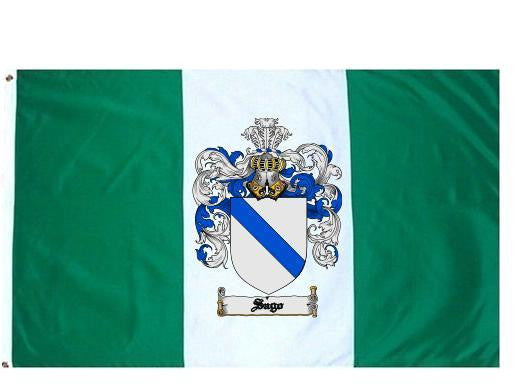 Sago Family Crest Flag / Coat of Arms Flag. You will receive a high quality 3' x 5' Polyester flag with two brass grommets. Proudly display your family heritage with this flag, or hang as a banner on a wall. Our flags make great gifts for birthdays, weddings, anniversaries, fathers day, mothers day, groomsmen gifts, and any other occasion