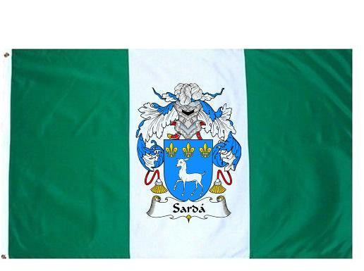 Sarda Family Crest Flag / Coat of Arms Flag. You will receive a high quality 3' x 5' Polyester flag with two brass grommets. Proudly display your family heritage with this flag, or hang as a banner on a wall. Our flags make great gifts for birthdays, weddings, anniversaries, fathers day, mothers day, groomsmen gifts, and any other occasion
