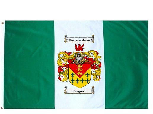Seymer Family Crest Flag / Coat of Arms Flag. You will receive a high quality 3' x 5' Polyester flag with two brass grommets. Proudly display your family heritage with this flag, or hang as a banner on a wall. Our flags make great gifts for birthdays, weddings, anniversaries, fathers day, mothers day, groomsmen gifts, and any other occasion