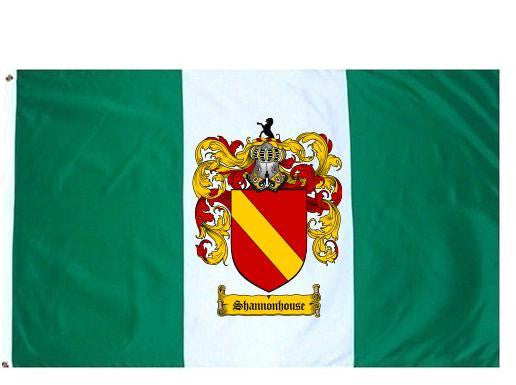 Shannonhouse Family Crest Flag / Coat of Arms Flag. You will receive a high quality 3' x 5' Polyester flag with two brass grommets. Proudly display your family heritage with this flag, or hang as a banner on a wall. Our flags make great gifts for birthdays, weddings, anniversaries, fathers day, mothers day, groomsmen gifts, and any other occasion