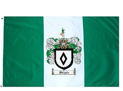 Skiplie Family Crest Flag / Coat of Arms Flag. You will receive a high quality 3' x 5' Polyester flag with two brass grommets. Proudly display your family heritage with this flag, or hang as a banner on a wall. Our flags make great gifts for birthdays, weddings, anniversaries, fathers day, mothers day, groomsmen gifts, and any other occasion