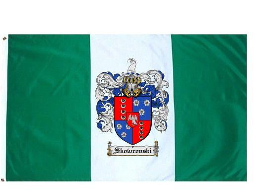 Skowronski Family Crest Flag / Coat of Arms Flag. You will receive a high quality 3' x 5' Polyester flag with two brass grommets. Proudly display your family heritage with this flag, or hang as a banner on a wall. Our flags make great gifts for birthdays, weddings, anniversaries, fathers day, mothers day, groomsmen gifts, and any other occasion
