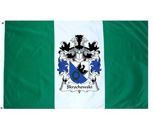 Skrochowski Family Crest Flag / Coat of Arms Flag. You will receive a high quality 3' x 5' Polyester flag with two brass grommets. Proudly display your family heritage with this flag, or hang as a banner on a wall. Our flags make great gifts for birthdays, weddings, anniversaries, fathers day, mothers day, groomsmen gifts, and any other occasion