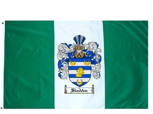 Sladden Family Crest Flag / Coat of Arms Flag. You will receive a high quality 3' x 5' Polyester flag with two brass grommets. Proudly display your family heritage with this flag, or hang as a banner on a wall. Our flags make great gifts for birthdays, weddings, anniversaries, fathers day, mothers day, groomsmen gifts, and any other occasion