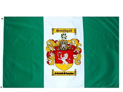 Smithgall Family Crest Flag / Coat of Arms Flag. You will receive a high quality 3' x 5' Polyester flag with two brass grommets. Proudly display your family heritage with this flag, or hang as a banner on a wall. Our flags make great gifts for birthdays, weddings, anniversaries, fathers day, mothers day, groomsmen gifts, and any other occasion