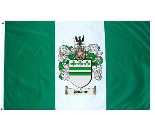 Soame Family Crest Flag / Coat of Arms Flag. You will receive a high quality 3' x 5' Polyester flag with two brass grommets. Proudly display your family heritage with this flag, or hang as a banner on a wall. Our flags make great gifts for birthdays, weddings, anniversaries, fathers day, mothers day, groomsmen gifts, and any other occasion