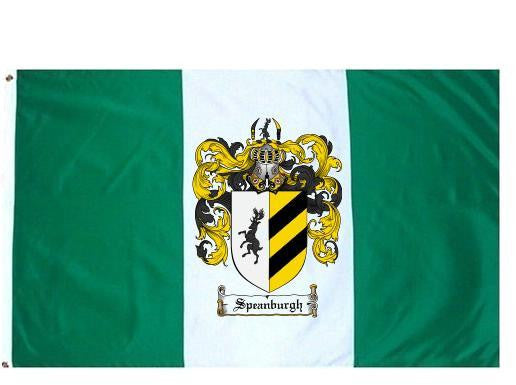 Speanburgh Family Crest Flag / Coat of Arms Flag. You will receive a high quality 3' x 5' Polyester flag with two brass grommets. Proudly display your family heritage with this flag, or hang as a banner on a wall. Our flags make great gifts for birthdays, weddings, anniversaries, fathers day, mothers day, groomsmen gifts, and any other occasion