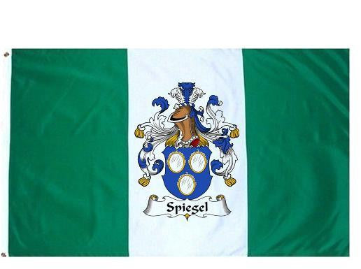 Spiegel Family Crest Flag / Coat of Arms Flag. You will receive a high quality 3' x 5' Polyester flag with two brass grommets. Proudly display your family heritage with this flag, or hang as a banner on a wall. Our flags make great gifts for birthdays, weddings, anniversaries, fathers day, mothers day, groomsmen gifts, and any other occasion
