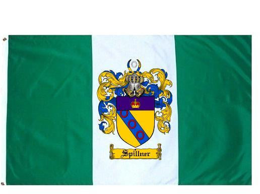 Spillner Family Crest Flag / Coat of Arms Flag. You will receive a high quality 3' x 5' Polyester flag with two brass grommets. Proudly display your family heritage with this flag, or hang as a banner on a wall. Our flags make great gifts for birthdays, weddings, anniversaries, fathers day, mothers day, groomsmen gifts, and any other occasion