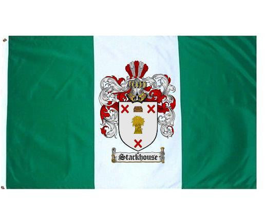 Stackhouse Family Crest Flag / Coat of Arms Flag. You will receive a high quality 3' x 5' Polyester flag with two brass grommets. Proudly display your family heritage with this flag, or hang as a banner on a wall. Our flags make great gifts for birthdays, weddings, anniversaries, fathers day, mothers day, groomsmen gifts, and any other occasion
