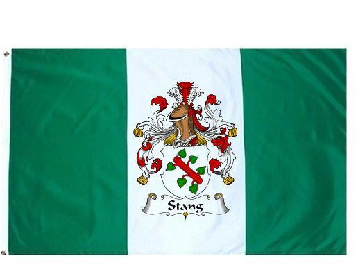 Stang Family Crest Flag / Coat of Arms Flag. You will receive a high quality 3' x 5' Polyester flag with two brass grommets. Proudly display your family heritage with this flag, or hang as a banner on a wall. Our flags make great gifts for birthdays, weddings, anniversaries, fathers day, mothers day, groomsmen gifts, and any other occasion