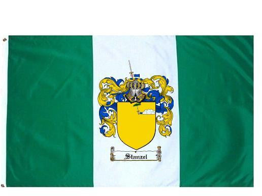 Stanzel Family Crest Flag / Coat of Arms Flag. You will receive a high quality 3' x 5' Polyester flag with two brass grommets. Proudly display your family heritage with this flag, or hang as a banner on a wall. Our flags make great gifts for birthdays, weddings, anniversaries, fathers day, mothers day, groomsmen gifts, and any other occasion
