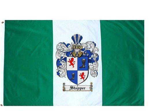 Stapper Family Crest Flag / Coat of Arms Flag. You will receive a high quality 3' x 5' Polyester flag with two brass grommets. Proudly display your family heritage with this flag, or hang as a banner on a wall. Our flags make great gifts for birthdays, weddings, anniversaries, fathers day, mothers day, groomsmen gifts, and any other occasion